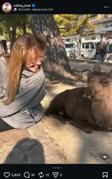 MAX・LINA「鹿と私」 厳島神社での鹿と2S!「すごい仲良し」「鹿も美しさにうっとり!?」の声