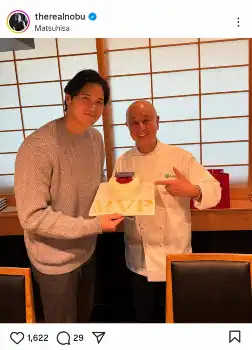 LA有名日本人シェフが大谷翔平のMVPをお祝い! にこやか2ショット披露に「お二人共素敵」の声