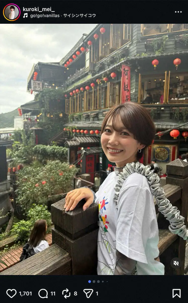 ロッテの黒木知宏投手コーチの長女でタレントの黒木芽依(26)が23日までに自身のインスタグラムを更新。台湾のキュウフンに訪れた様子を投稿した。
