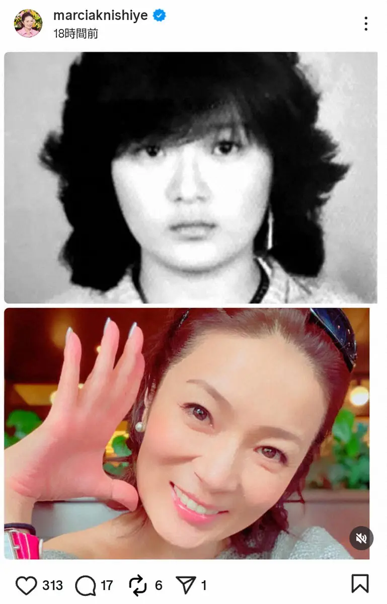 「1986年11月23日。17歳の私が、大きな夢だけを胸に日本へ飛び込んだ日。あれから40年。振り返れば、出逢ったすべての人が、私の歩みを照らしてくれました」と書き始めたマルシア。来日した17歳のころの写真と現在の写真を並べ、ビフォーアフターを披露した。