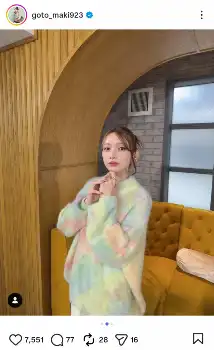他にも、ハッシュタグに「まきふく」とつづり、ピンクや黄色の混ざったグラーデションカラーニット姿のアップショットも披露した。