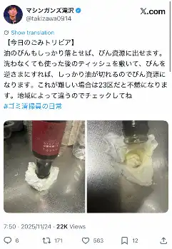 「油のびんもしっかり落とせば、びん資源に」“ごみ清掃員芸人”がコツ紹介「洗わなくても…」