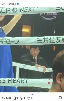 千原ジュニア「素晴らしい試合の裏にはいつもヤツがいる」天心―拓真戦でパシャリ 人気芸人の奮闘伝える