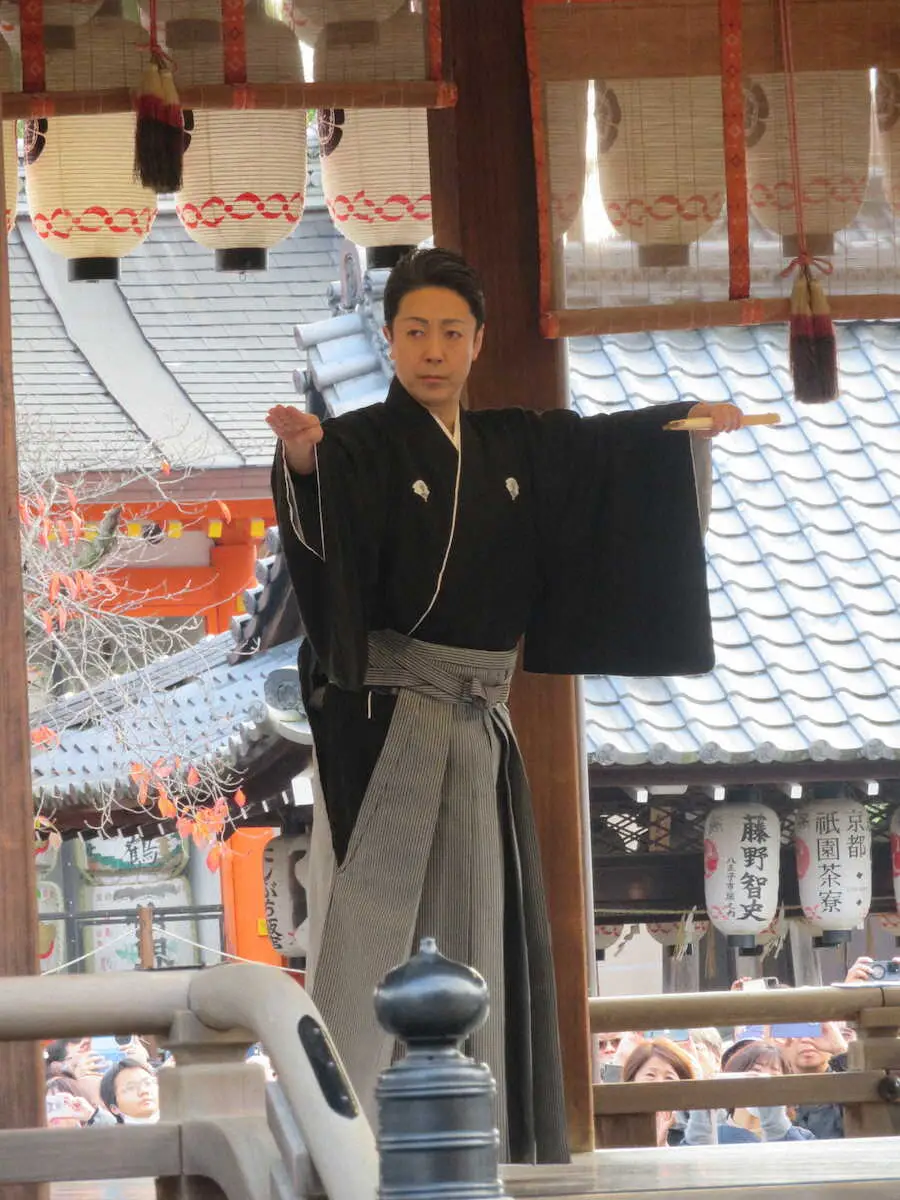 京都・八坂神社の舞殿で奉納舞「七福神」を披露した八代目尾上菊五郎