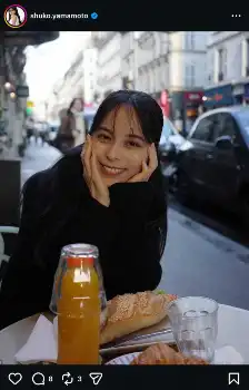 山本萩子「小麦大量摂取!」 カフェテラスでの微笑みあご乗せポーズS!「可愛い」「お美しい」の声