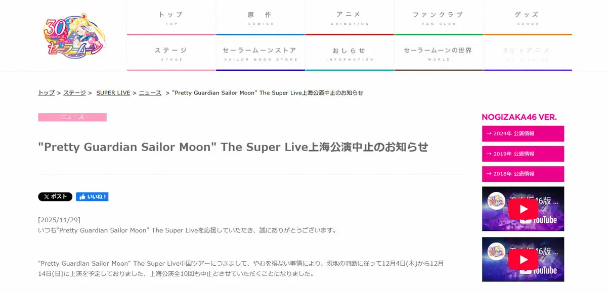 中国公演の中止 アニメ関連でも影響続く 舞台セーラームーン全18公演中止 アニソンフェスも