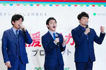 <「応援のチカラ プロジェクト」発表記者会>壇上で声を合わせる(左から)稲垣吾郎、草なぎ剛、香取慎吾(撮影・会津 智海) Photo by スポニチ 香取慎吾 1カ月後の紅白に期待?「落ちたかー!」すっとぼけ会場笑い 来… ギャラリーで見る この記事のフォト 2025年11月30日の画像一覧 もっと見る 2025年11月30日の画像をもっと見る