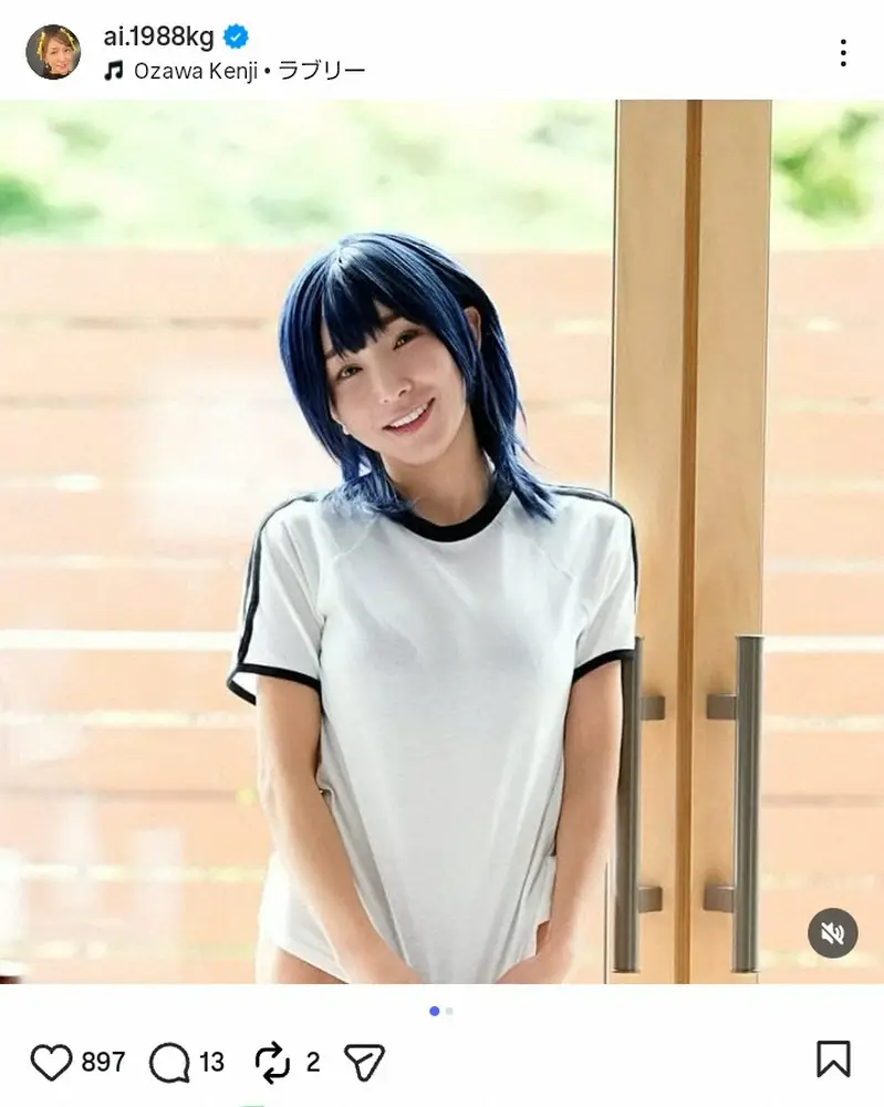 加護亜依「お恥ずかしいですが…」青髪のコスプレ姿にファン興奮「か…カワイイ!」「似合ってます」