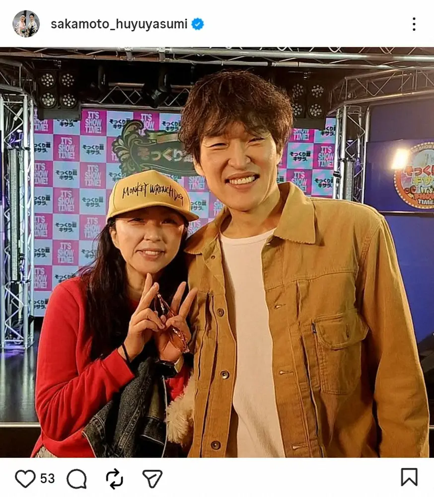 ものまねタレントの坂本冬休み(54)が3日、自身のインスタグラムを更新。人気芸人との2ショット写真を添え、感謝の気持ちを伝えた。