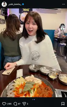 “競馬中継で人気”テレ東・冨田有紀アナ 韓国料理に最高の笑顔S!「素敵女性!」「可愛すぎ」の声