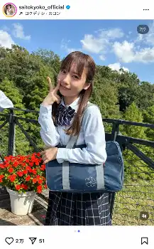齊藤京子、制服姿のオフショット公開「振り幅がすごかったですね。。笑」