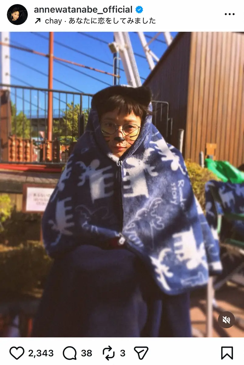 「もう10年前 この時はとにかく、寒かった… 2015」とつづり、遊園地デートシーンで、顔にフェイスペインティングを施し猫耳カチューシャをつけ、毛布にくるまるオフショットを投稿した。