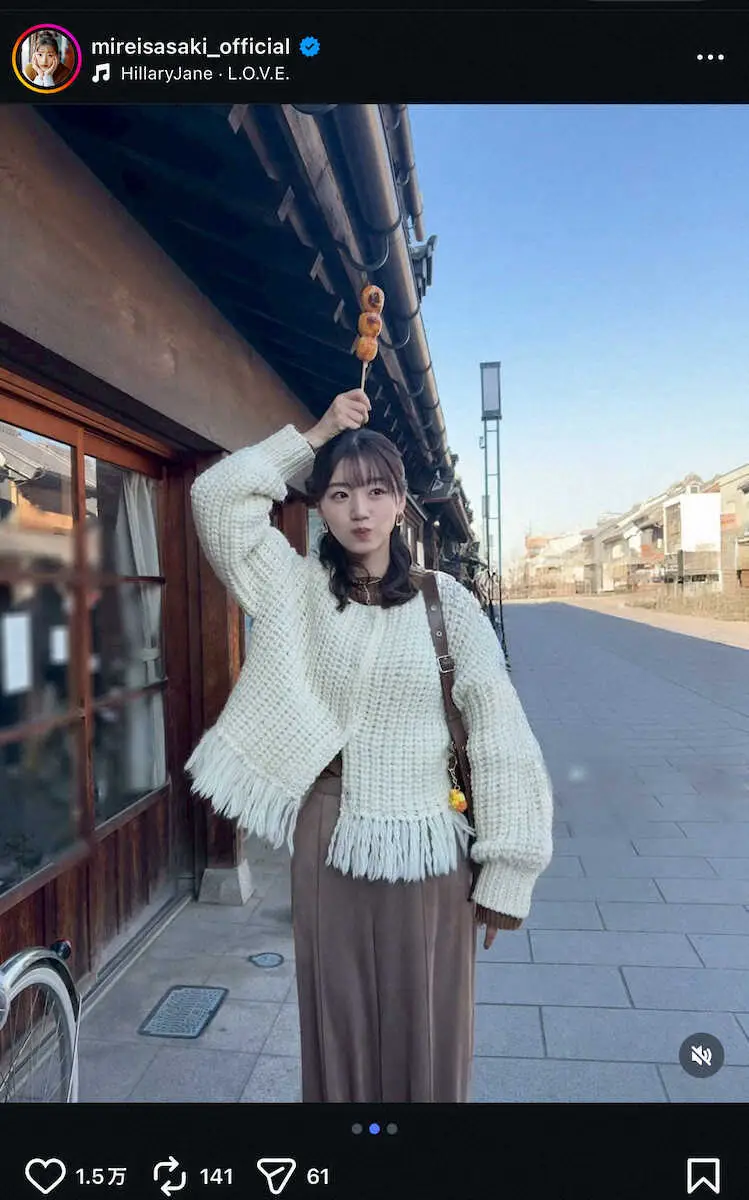 元日向坂・佐々木美玲「川越でお団子」 食べ歩きデート満載S!「かわいすぎ!」「横顔が美しい」の声