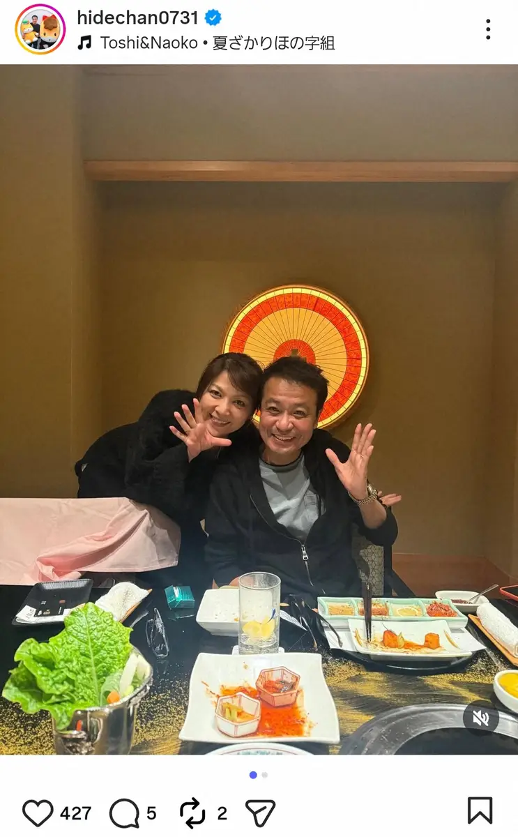 中山秀征(58)が6日、自身のインスタグラムを更新。仲良しな大物女優との“食事会ショット”を披露した。