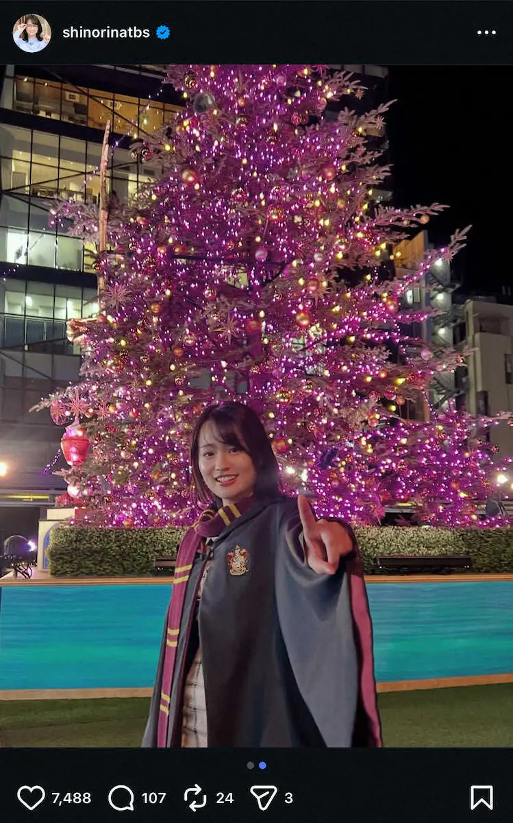 TBSの篠原梨菜アナウンサー(29)が7日までに自身のインスタグラムを更新。ハリー・ポッターのコスプレショットを投稿した。