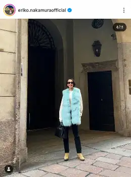 中村江里子 ミラノで心機一転“おしゃれをしよう!!” 25年前の革コート姿に「峰不二子みたい」の声