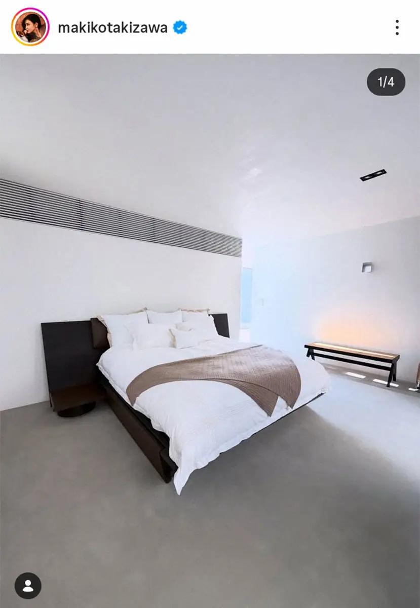 滝沢はインスタグラムに広々をした寝室の写真を投稿。「寝室が素敵になりました」とつづった。