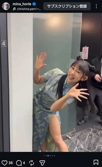 フリーアナウンサーの堀江聖夏(みな、32)が8日までに自身のインスタグラムを更新。スリットチャイナ服の“太腿ちらりショット”公開