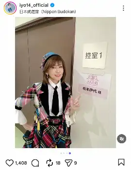 続けて「AKBの衣装も着させて頂き、楽しいひとときでした」とつづり、AKB48らしい赤や青のチェックが織り込まれたミニスカートの衣装を着て、現役メンバーの倉野尾成美(25)との“アイドル2ショット”や、自身の名前が貼られた楽屋前でのソロショットも披露した。
