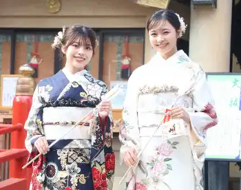 林芽亜里、松田実桜が東京・須賀神社で晴れ着姿を披露 林は変化の一年を回想