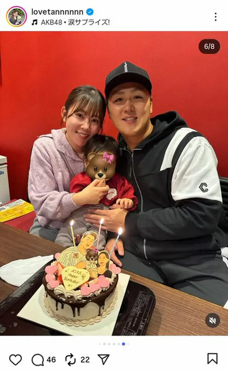 ファンからは「ずっと私の中ではあの頃のらぶたんのまま」「素晴らしい素敵な1年にしてくださいね」「お誕生日おめでとう」「幸せそうで何より」「可愛らしいママさん」「食べ過ぎ注意しましょう」「ほんとうにかわいくて素敵な夫婦」などのコメントが寄せられた。