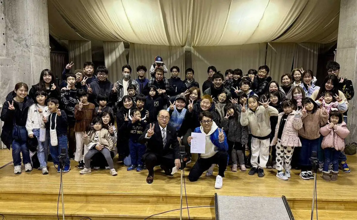 「花火よあがれ!」のレコーディング後に記念撮影する参加者ら