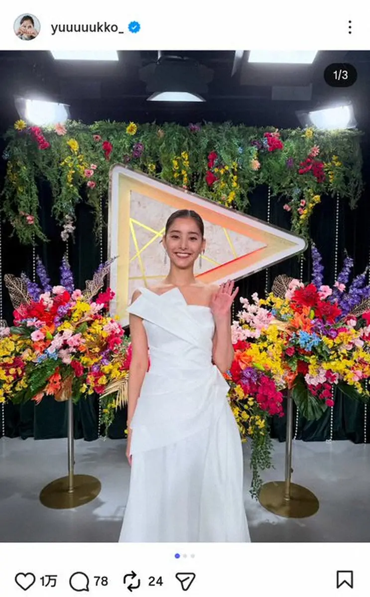 新木優子 純白ドレスの衣装姿にファンくぎ付け「女神」「あまりに奇麗」「後ろの花たちが可哀想」