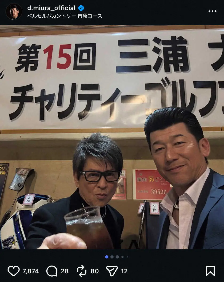主催ゴルフコンペに豪華JRA騎手が集結!三浦大輔氏の公式インスタグラム(@d.miura_official)から “番長”三浦大輔氏 豪華メンバー集結の主催ゴルフコンペ!“コワモテ俳優”… ギャラリーで見る この記事のフォト 2025年12月13日の画像一覧 もっと見る 2025年12月13日の画像をもっと見る