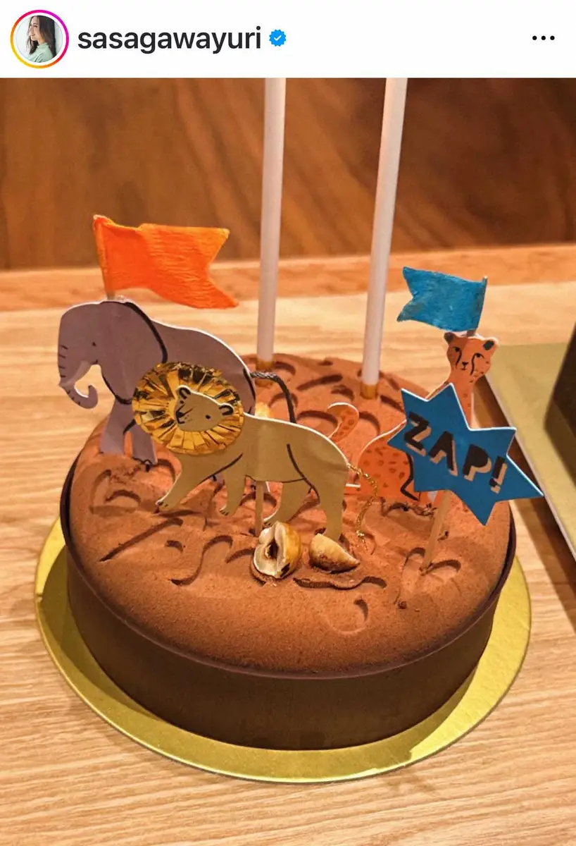 「今日の思い出を込めて、ケーキには動物たちを立てた。ずーっと前にNYに行った時に購入したフラッグたち」と動物が並ぶケーキの写真も。「いつもお姉ちゃんのチョコレートに憧れていたので、2歳の記念のケーキはチョコケーキ」とつづった。