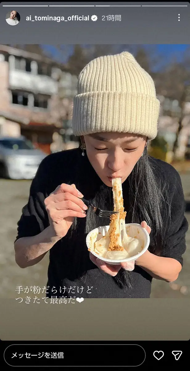 約20年ぶり妊娠の冨永愛「年末のお餅つき」報告 白キャップ姿で餅ほおばり…今月に「新しい命」報告