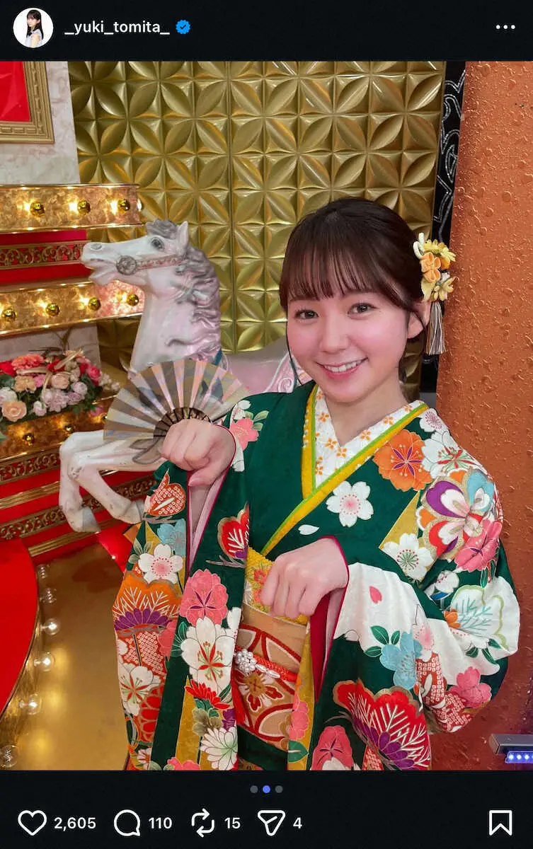 ネットでは「めっちゃ可愛い」「振袖姿も素敵」「冨田ちゃんに縁がある午年が始まりましたね」などの声が上がった。