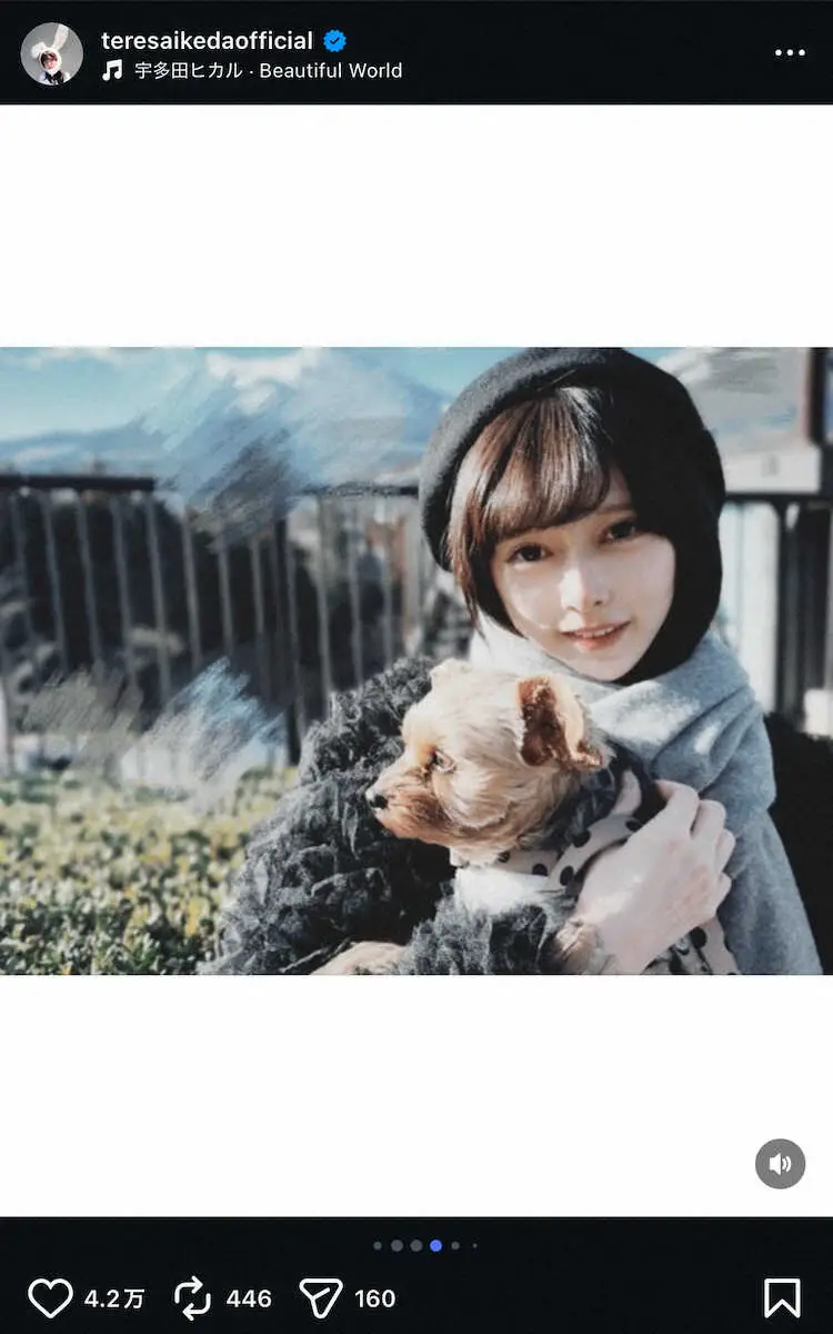 乃木坂・池田瑛紗 愛犬と“ほっこり”2S!完全防備の散歩風景も公開 「まるで芸術作品みたい」の声