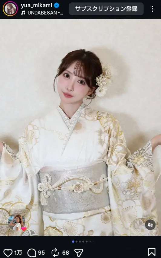 三上悠亜公式インスタグラム(@yua_mikami)から 三上悠亜 白金カラーの振り袖“色気だだ漏れ”ショット公開に「大和撫子」… ギャラリーで見る この記事のフォト 2026年01月11日の画像一覧 もっと見る 2026年01月11日の画像をもっと見る