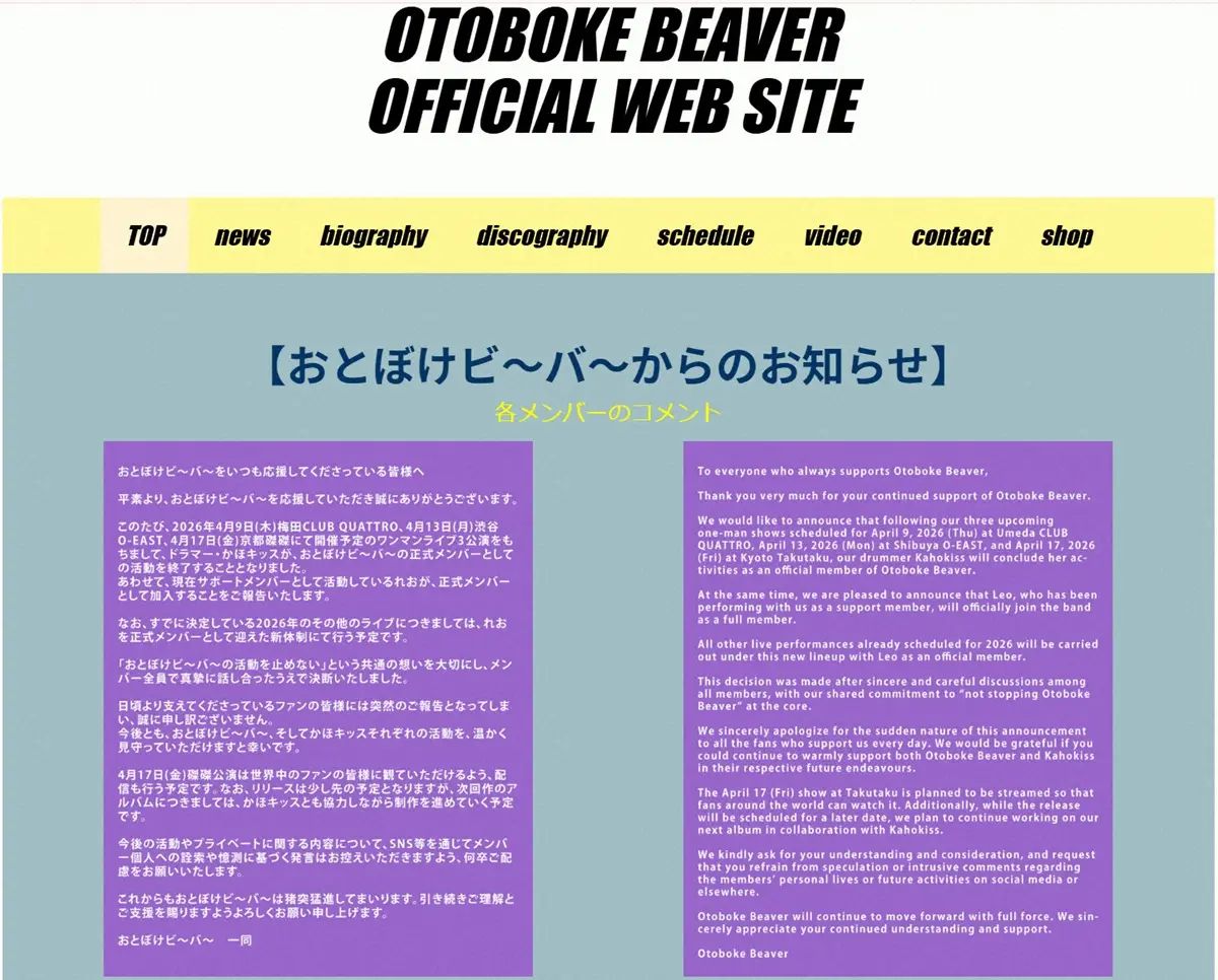おとぼけビ~バ~のインスタグラム(@otobokebeaver)から おとぼけビ~バ~ 4月にドラムス・かほキッスが脱退「別々の道を」 オア… ギャラリーで見る この記事のフォト 2026年01月12日の画像一覧 もっと見る 2026年01月12日の画像をもっと見る
