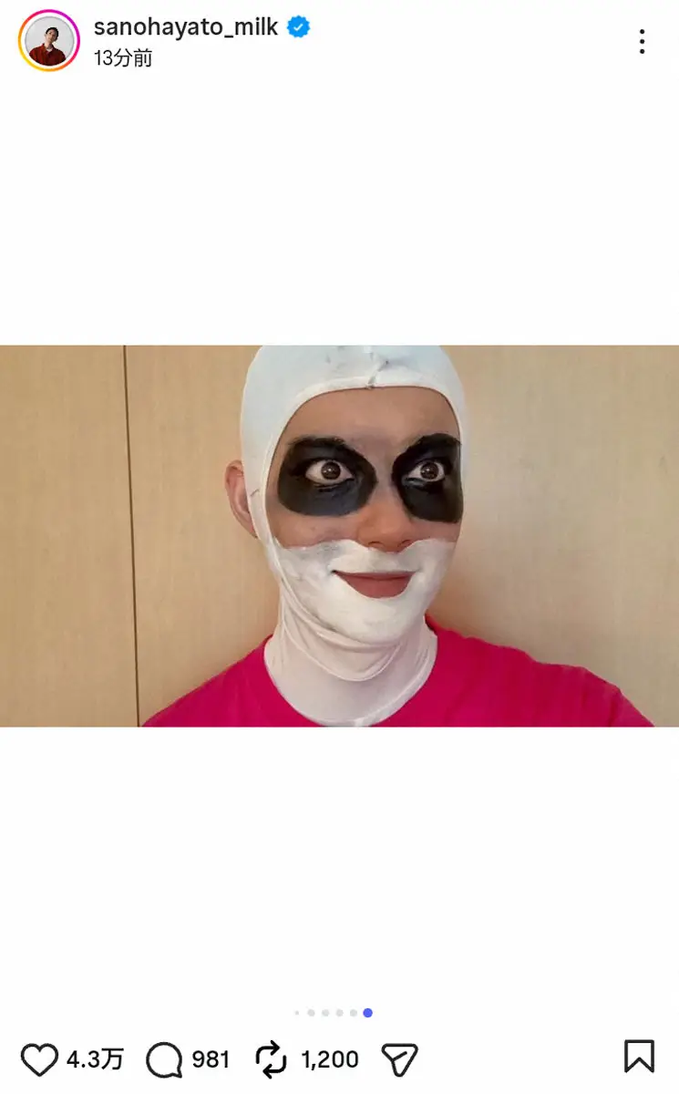 「M!LK」佐野勇斗の公式インスタグラム(sanohayato_milk)から