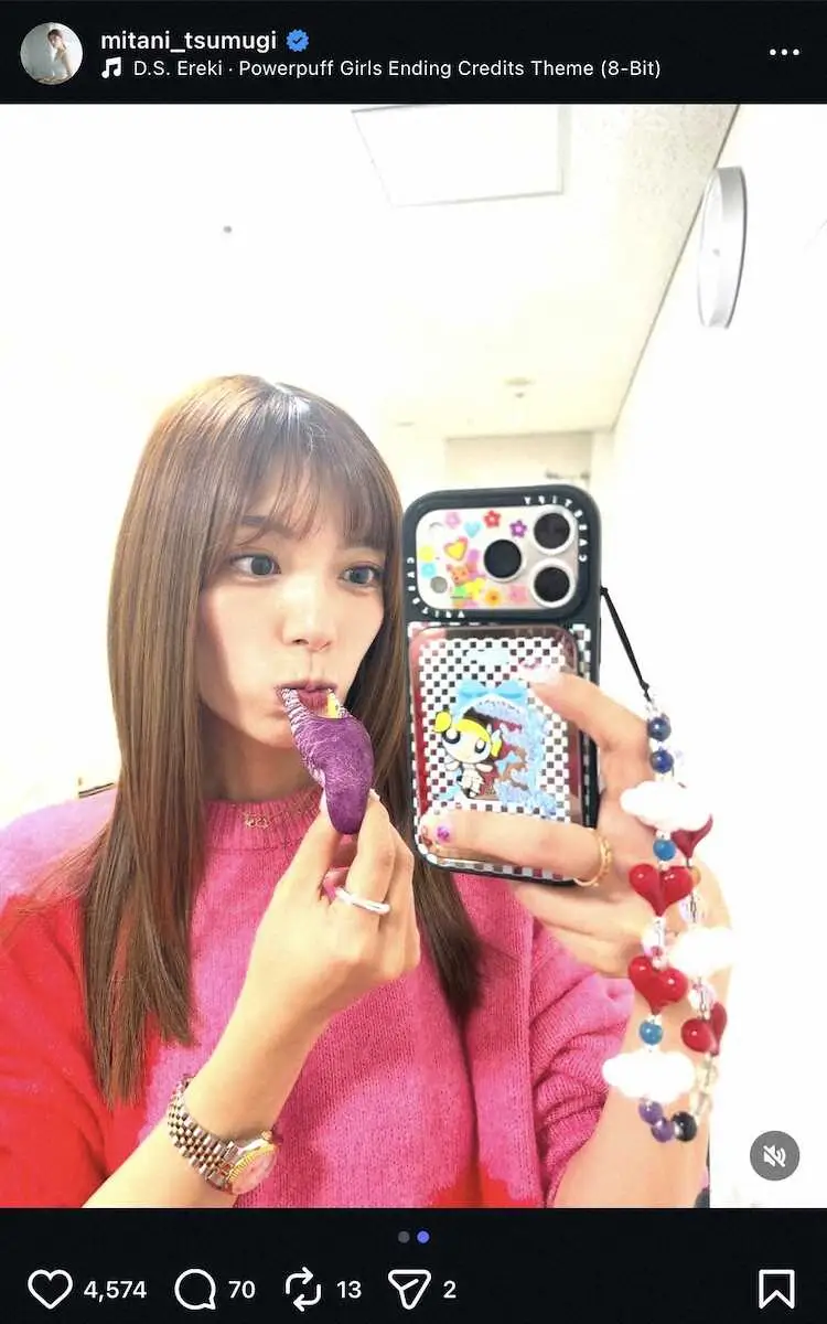 三谷紬アナウンサーのインスタグラム(@mitani_tsumugi)から テレ朝・三谷紬アナ「ラヴ上等に影響されて…」 “平成ギャル風”自撮りSに… ギャラリーで見る この記事のフォト 2026年01月21日の画像一覧 もっと見る 2026年01月21日の画像をもっと見る
