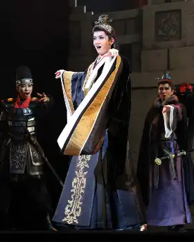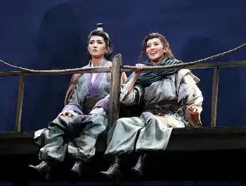 暗殺されかけたインソンを助け、貧しいながらも必死に生きる青年・セウォンを演じた彩海せら(あやみ・せら)は表情も豊かに、安定した歌唱力で聞かせ、王妃・ウンビン役でバウホール初ヒロインの乃々れいあ(のの・れいあ)も凜(りん)とした強さの中にインソンへの揺るぎない愛を表現してみせた。公演は2月4日まで。