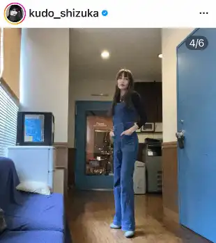 工藤はこの日、脚長効果抜群のデニムのオーバーオールの大人のカジュアル。動きやすくかつスタイリッシュな私服スタイルを披露した。