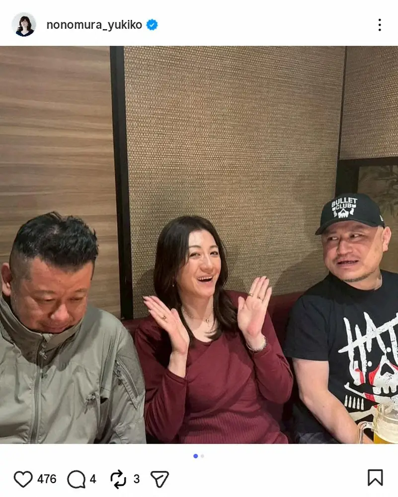 放送作家の野々村友紀子氏(51)が22日、自身のインスタグラムを更新。“大阪NSC同期”の人気芸人との3ショットを披露した。