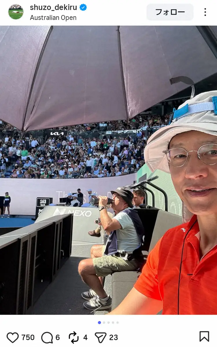 「高温注意のアラートが発生し、携帯ダウン」するほどの暑さだったことを明かし、「選手はこの暑さの中、5セット戦っている。テニスだけではなく自然との勝負でもある」と私見をつづった。そして、「ただテニスを伝えられること、本当に幸せです」と感謝の思いを記した。