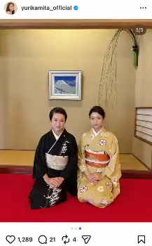 三田友梨佳 「お茶のお稽古」美人母と着物2S ファンうっとり「大和撫子母娘」「綺麗で上品」