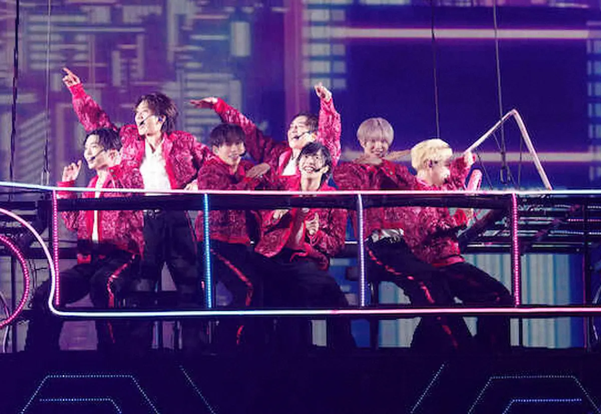 憧れの横浜アリーナで公演を行ったIMP.の(左から)影山拓也、鈴木大河、基俊介、椿泰我、松井奏、佐藤新、横原悠毅