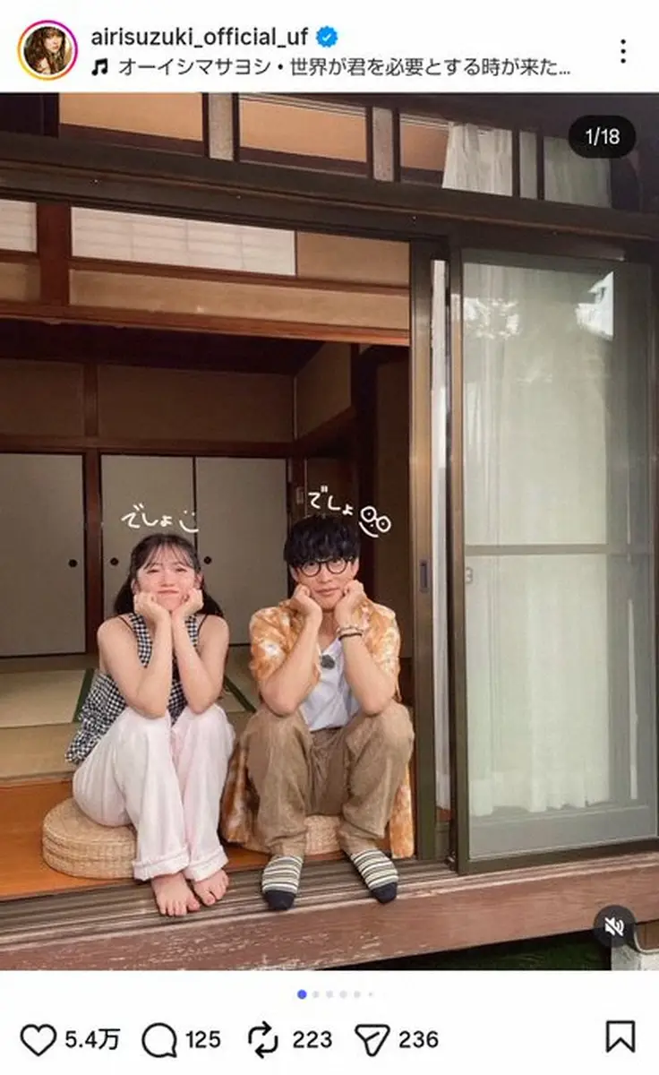 「#でしょでしょ2026年もよろしくお願いしますぜ、相方!!」と書きだした鈴木。「オーイシマサヨシ×鈴木愛理の【でしょでしょ!!】」で共演中のシンガーソングライター・オーイシマサヨシとの2ショットをアップした。