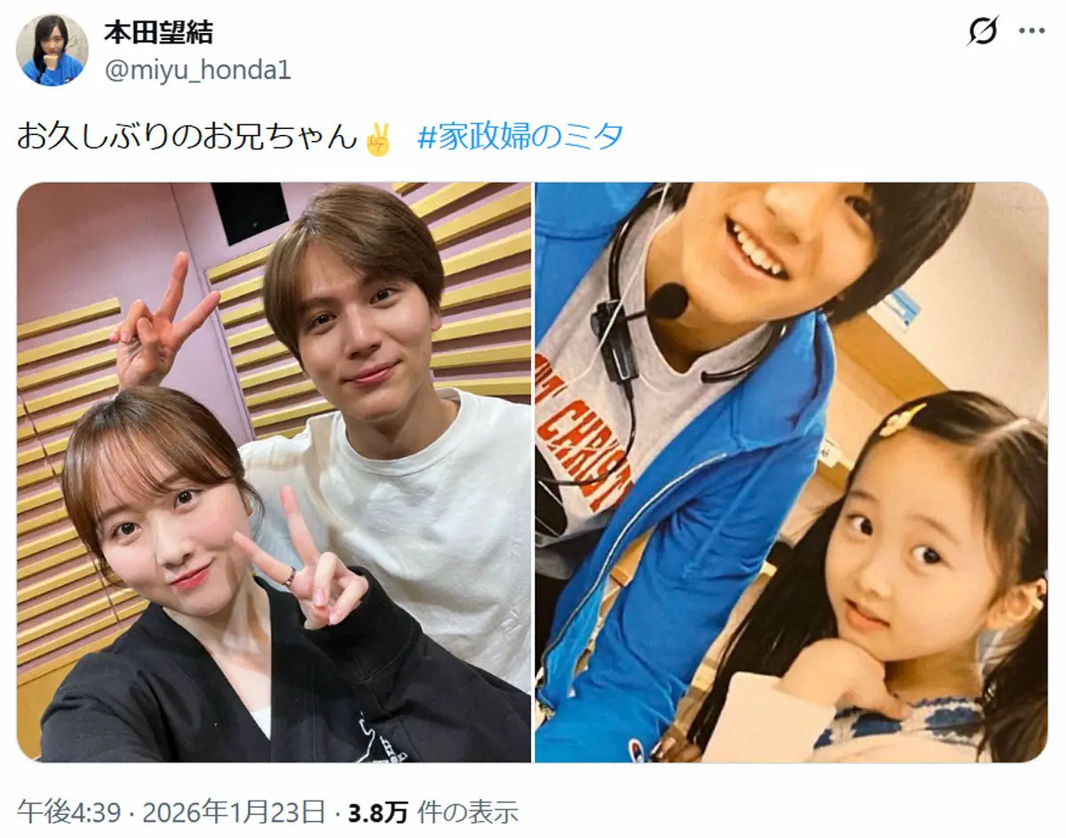 本田と中川は、11年の松嶋菜々子主演の日本テレビ系ドラマ「家政婦のミタ」で阿須田家の兄妹役で出演。当時、本田は小学1年で、中川は中学1年。本田は“お兄ちゃん”だった中川大志が初恋だったことを公言している。