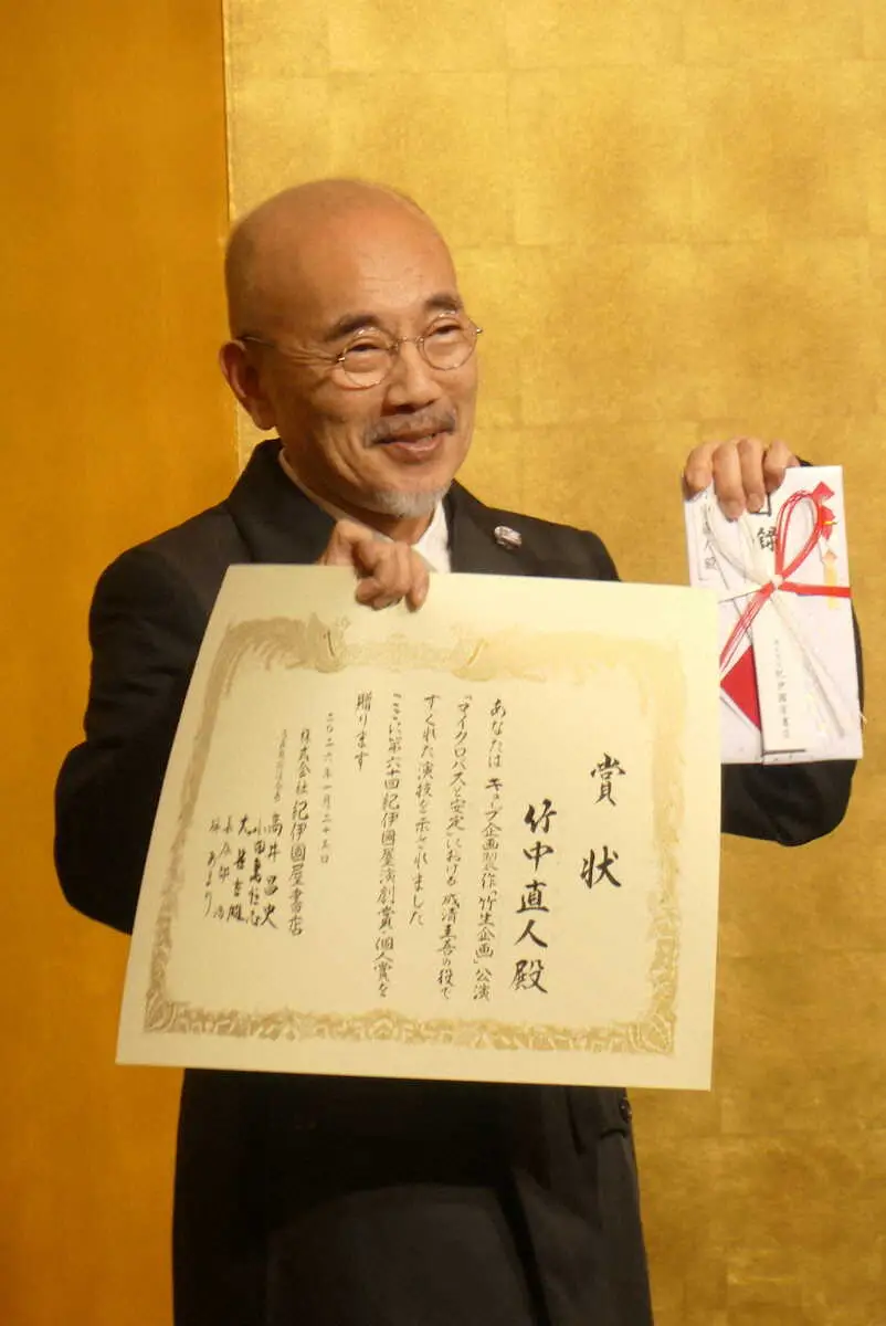 俳優の竹中直人(69)が「第60回紀伊国屋演劇賞」の個人賞を受賞し23日、都内で授賞式に出席した。