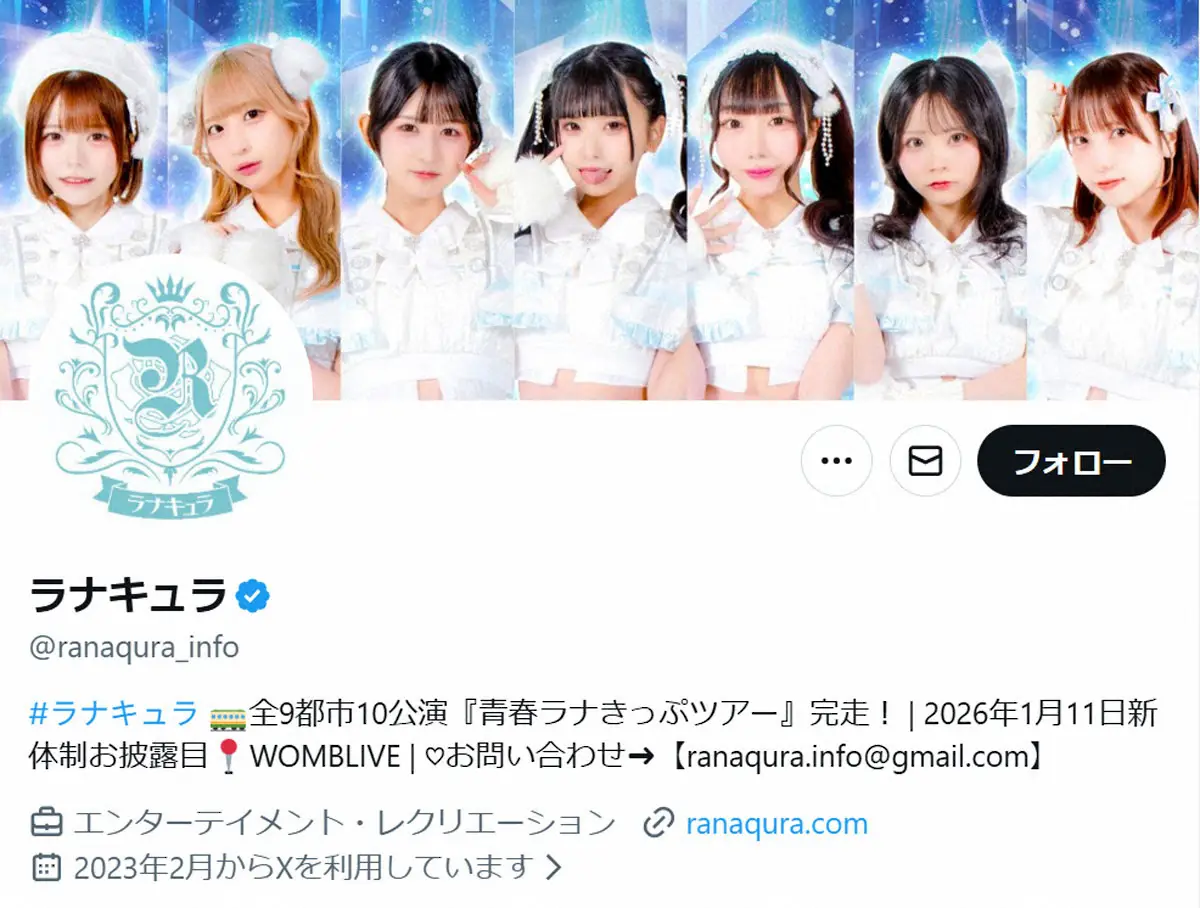 7人組アイドルグループ「ラナキュラ」のメンバー・あみ乃が左股関節唇損傷と診断されたことを26日、同グループの公式Xで発表した。