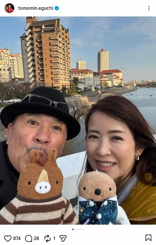 江口ともみ 58歳誕生日を2ショで報告 夫・つまみ枝豆からのプレゼント&CAのお祝いに感動