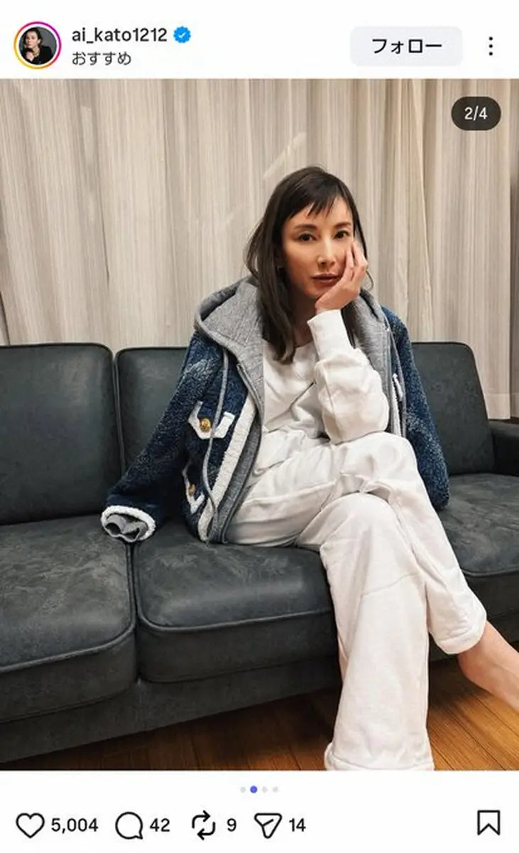 女優の加藤あい(43)が16日までに自身のインスタグラムを更新。近影を公開した。