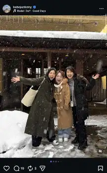 「両親と会ったり、仕事をしたり、友達と会ったり。いつもの仲良し1泊旅。今回もほんっと笑った~」と、雪景気の中で女子アナウンサーの木佐彩子、佐々木明子との笑顔3ショットや“激レア”浴衣ショットなども公開した。