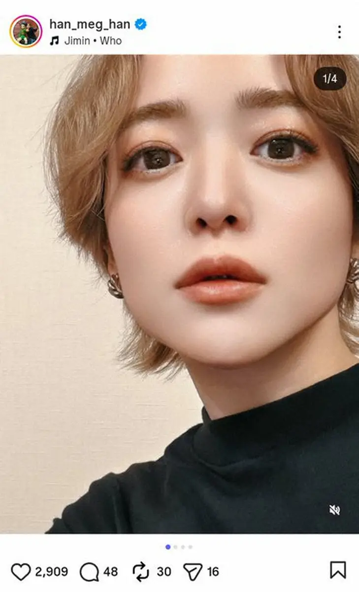 「盛れたので、あげます」と書き出した潘。ウェーブがかったハイトーンのショートカットで自撮りをアップした。